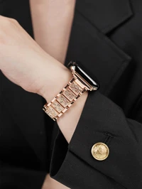 Rose Gold Stainless Steel Rhinestone Decorated Watch Band, Compatible With Apple Watch, Sizes Include 42mm, 38mm, 40mm, 41mm, 44mm, 45mm, 46mm And 49mm, Fashionable Smart Watch Replacement Band, Suitable For Series Ultra2, Ultra SE2, SE 11, 10, 9, 8, 7, 6, 5, 4, 3, 2, 1 And More, An Ideal Gift For Back-To-School Students #1 Bestseller