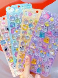 1pc 2026 New Cute Animal Cartoon 3D Epoxy Resin Sticker Set, Themes Include Rabbit, Bear, Cat, Candy, Fruit, Dessert, Adorable Animals, Reusable Waterproof Stickers For Planner, Stationery Decor, Phone Case Accessories