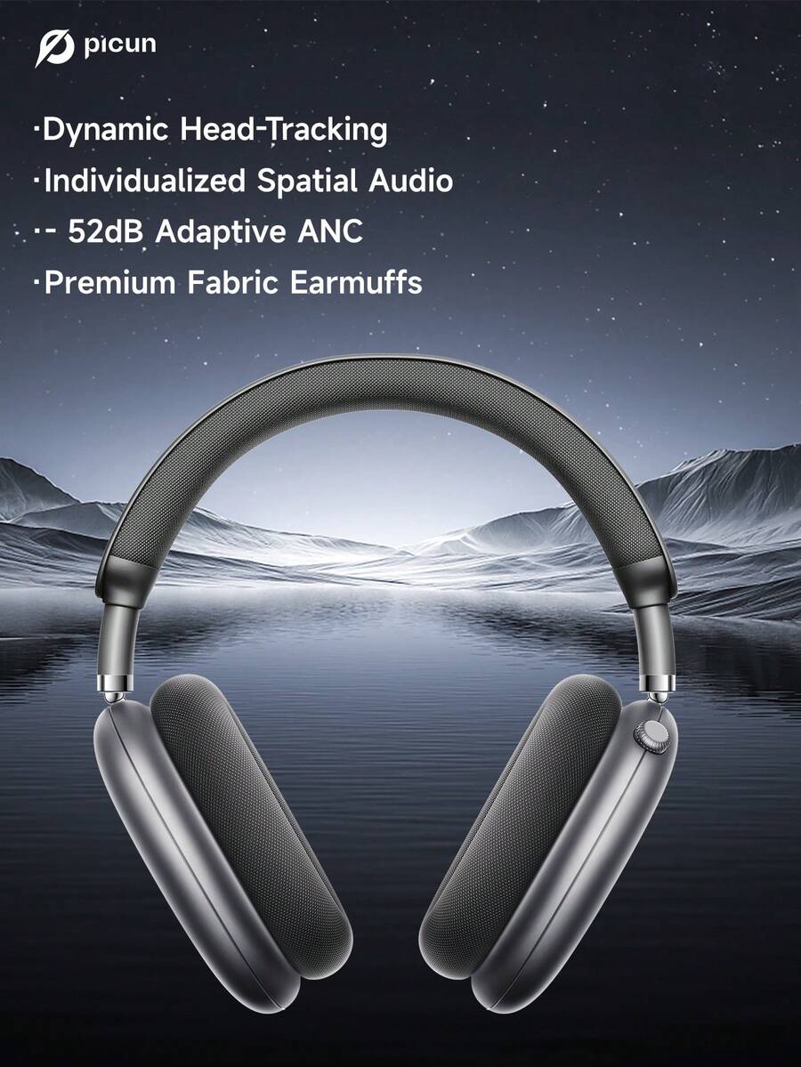 Picun Wireless Over Ear Headphones With 52dB Hybrid ANC, Hi Res Audio, 140H Playtime, Dual Device Pairing, 5 Mic ENC System & Detachable Fabric Cushions All Day Comfort & Productivity