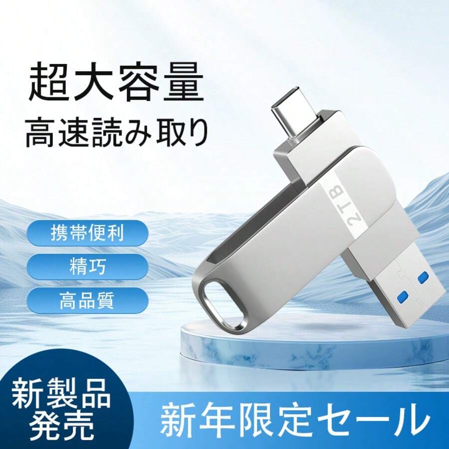 • RUSHBGM 2-In-1 USB Flash Drive 2TB | No App Needed | Photo Backup | High-Speed External Storage | Rotating Design | Smartphone & Laptop Compatible (Silver)