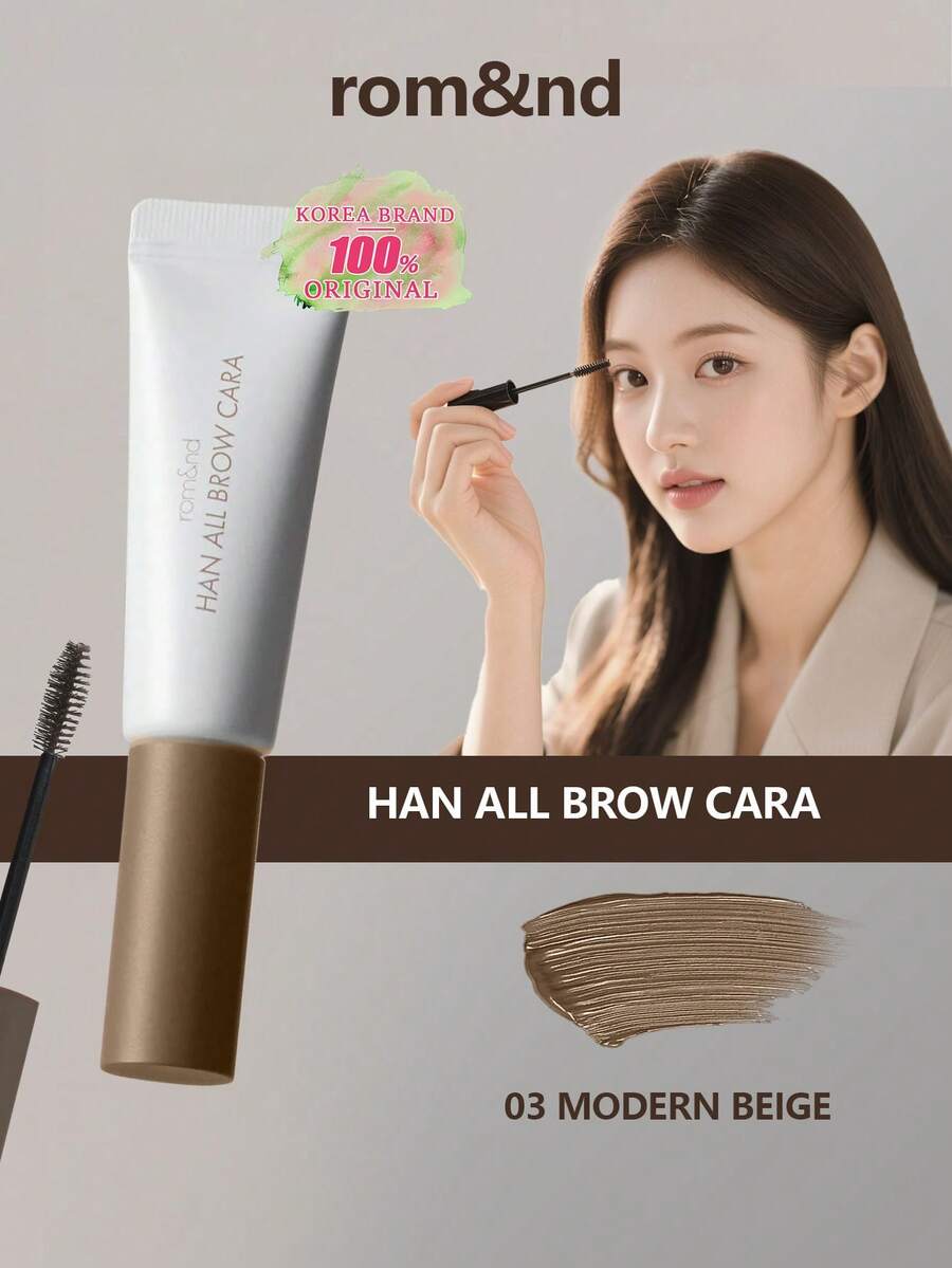 Rom&nd Romand ALL BROW CARA 03 MODERN BEIGE, Airy Hair-Like Stroke, Blurred Velvet Finish, Botanical Brow-Breathe Tech, Ash Brown Hair Texture, Cool Tea Velvet Fluff, Warm Caramel Feathered, Pocket-Size Brow Sculpt Kit, K-Beauty,Korean Makeup, 9g/0.32oz