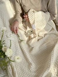 1pc Thick, Oversized Tufted Faux Rabbit Fur Fleece Blanket, Cream White Color, Soft & Plush, Anti-Static, Dual-Sided Warmth, Versatile For Indoor & Outdoor Use - Office Nap, Sofa, Travel, Air Conditioning, All-Season #10 Bestseller