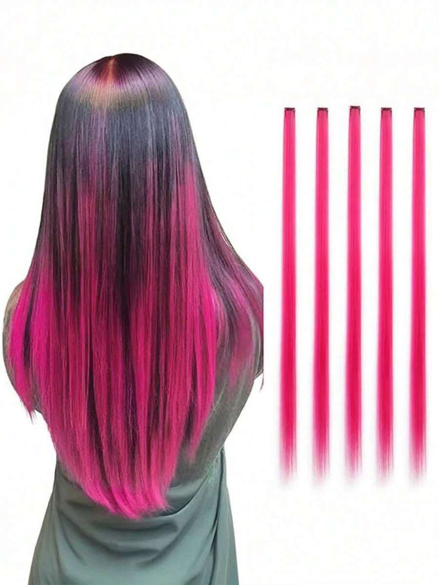 5pcs/Set Colorful Synthetic Hair Extensions Clip-In Hair Pieces, Rainbow Hair Extensions For Women & Girls