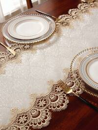 Cirelle1pc Luxury White Faux Fur Table Runner - Elegant Solid Color Polyester, Soft Translucent Texture, Cream White Tone, Durable And Easy To Clean, Suitable For Christmas, New Year And Daily Use Holiday Dining Table Decor - Fits Modern And Traditional Dining Tables, Narrow Or Wide Tables, Perfect For Holiday Dining Setting, Ideal Choice For Kitchen, Dining Room, Home Decor, Bedroom, Christmas Decoration 1pc Satin Jacquard Table Runner, Delicate Water-Soluble Embroidered Lace Trim, Minimalist High-End Design, Suitable For All Seasons, Can Be Used As Kitchen/Dining Table Runner, Placemat, Picnic Mat, Gift, Cabinet Scarf, Home Decor, Family Gathering, Holiday Decoration, Applicable For Indoor/Outdoor, Villa, Party, Wedding #3 Bestseller
