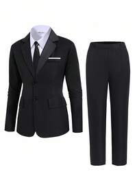 SHEIN 2pcs/Set Teen Boy Casual Collared Long Sleeve Blazer Jacket And Straight Leg Pants, Classic Solid Color Minimalist Gentleman Suit, Suitable For Christmas, Home, Commute, School, Daily Casual, Travel, Outdoor, Party, Autumn/Winter