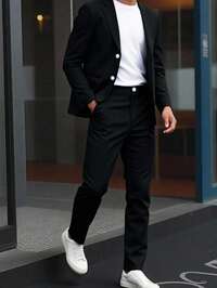 Fern GlowSHEIN 2pcs/Set Teen Boys Casual Suit Set, Gentleman Style Streetwear Punk Rock School Outfit, Suitable For Spring/Summer Occasions,Winter Set,Winter Clothing,Fall Outfits,Fall Clothing,All Clothes For Kids,Black Tops ,Black Pants ,Fall Tops ,Winter Outwear #9 Bestseller