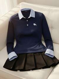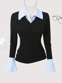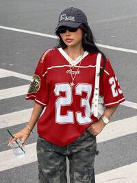 GlowziTeen Girls Contrast Color V-Neck Short T-Shirt, Loose Short Sleeve Tee Suitable For Spring/Summer Street, All-Match Everyday, Sports, Back To School, Casual, School Style, Easter, Music Festival, Graduation, Family Gathering #1 Bestseller
