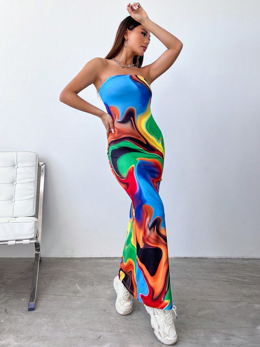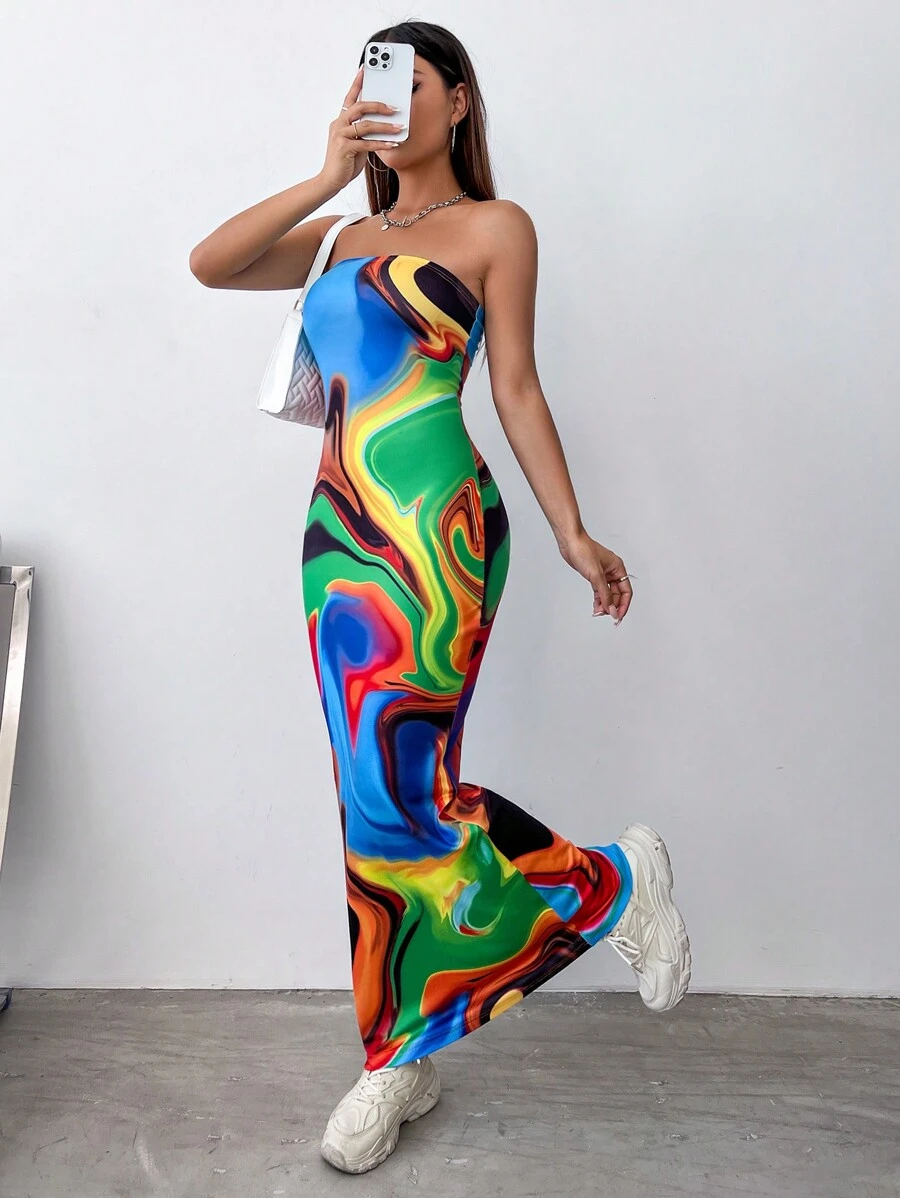 SHEIN Coolane タイダイ模様 チューブトップワンピース