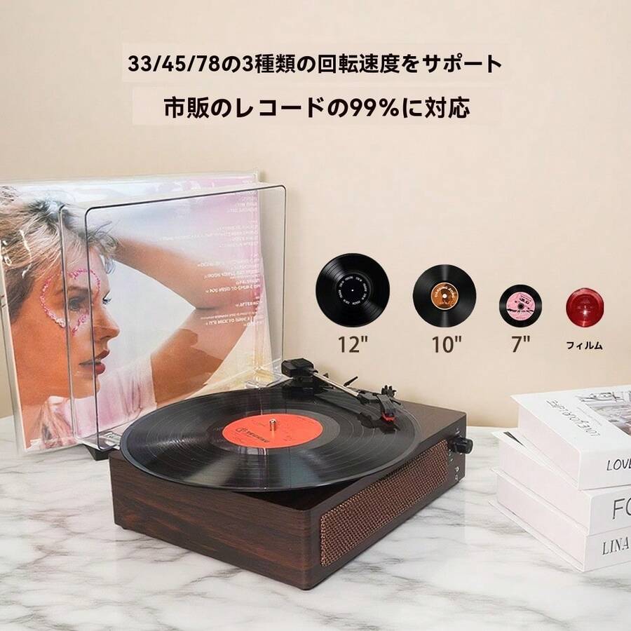 Bluetooth,Aux,USB,USBまたはその他のDC電源接続,45回転,33 1/3 回転,78回転