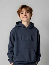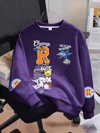 CozyroamerSHEIN Tween Boy Casual Hoodie Sweatshirt With Oversized Letter & Graphic Print, Loose Fit, Suitable For Spring, Summer, Autumn, Winter Outdoor, School, Street, Party And Home Leisure, Boys Hoodie, Teen Hoodie, Navy Blue Hoodie Fall