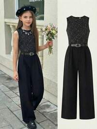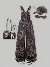 SparklynSparklyn Tween Girls Casual Style Bib Pants, Khaki Color With Bow Decor, Loose Straight Leg, Soft & Comfortable Fabric, Versatile For Daily, School, And Commute, Suitable For Spring, Summer, Autumn, And Winter
