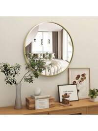 1pc Large Minimalist Round Wall Mirror - Horizontal Wall-Mounted Mirror, Plastic Frame, No Electricity Required | Suitable For Living Room, Bedroom, Entryway, Bathroom Wall Decor, Can Be Used As Selfie Mirror, Dressing Mirror, Room Decor, Dressing Room Decor, Studio Decor #9 Bestseller