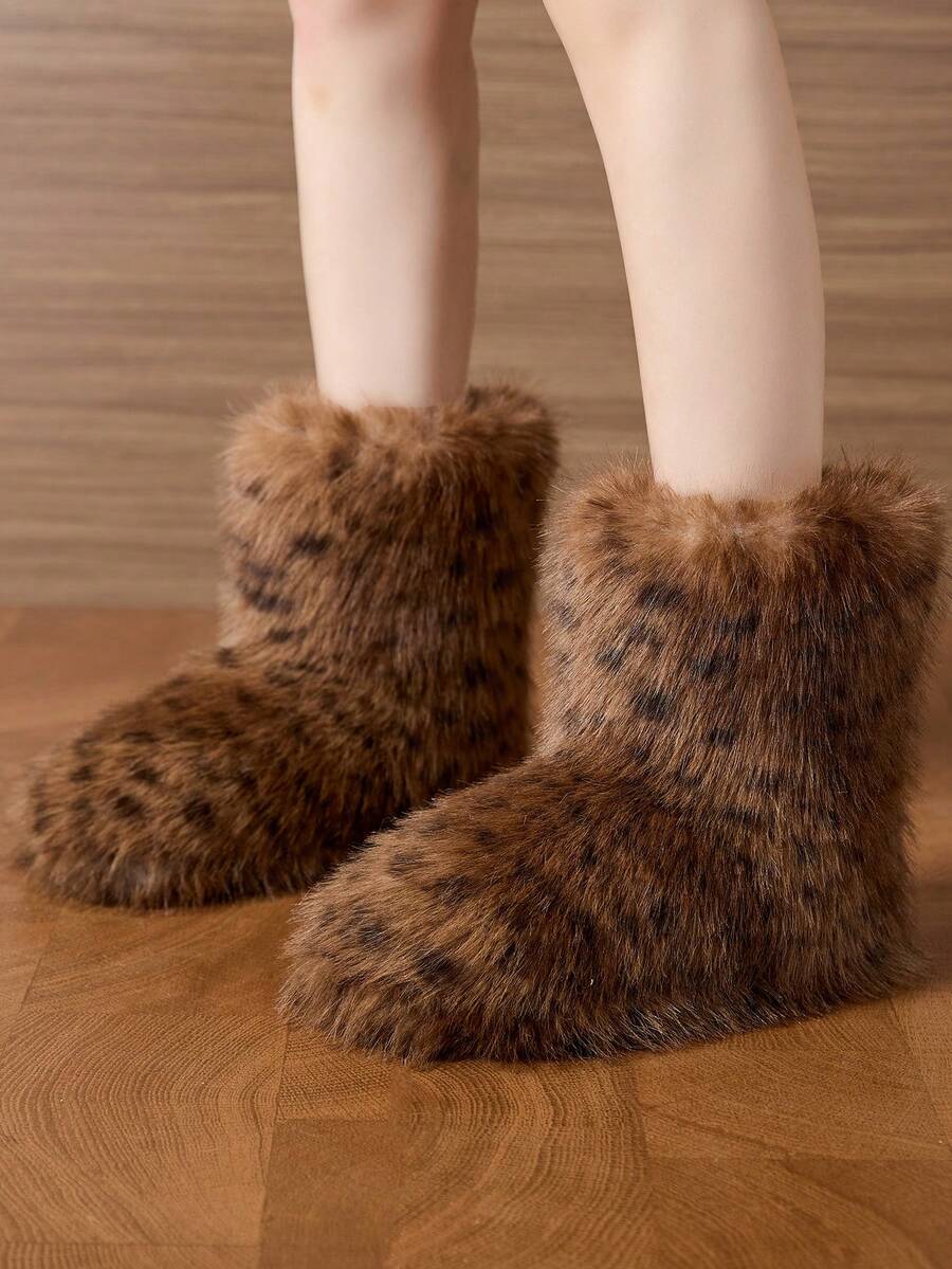 Women's 2025 New Leopard Print Fashionable Fringed Thick Sole Ankle Boots, Outdoor Winter