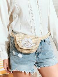 SheCarrySHECARRY 1pc Ladies, Women Embroidered Fashionable, Elegant, And Simple Straw Woven Vacation Belt Waist Bag, One-Piece Waist Bag/Chest Bag, For Beach, Vacation, Holiday, Summer, Seaside, Beach Party #5 Bestseller