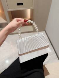 Moonlit EveBagMoonlit EveBag Glitter Bling,Shiny Glamorous,Elegant,Exquisite Ladies' Classic Pleated Design Satin Clutch Bag With Faux Pearl Handle, Evening Party Bag With Chain Strap, Wedding Prom Bag Dinner Bag,Evening Bag For Party Girl,Woman,For Female Perfect For Party,Wedding,Prom,Dinner/Banquet,For Best Gift For Women #1 Bestseller