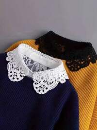 1pc Elegant Lace-Style Detachable Fake Collar | Women's White & Semi-Shirt Design For Sweaters, Blouses & Layered Outfits - Japanese Korean Fashion Accessory, Outfit Enhancer, Decorative Collar, Durable Fabric Collar,Breathable Half Shirt Collar With Adjustable Multifunctional Lace Bottom Collar, Used For Shirts And Dresses, Occasions: Office, School, Parties, Daily Casual Wear #1 Bestseller