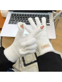 1 Pair Thickened Velvet Patchwork Women's Winter Gloves, Korean Style Knitted Touchscreen Casual Men's Warm Gloves, Suitable For Daily Activities, Sports, Riding, Parties, Running, Walking Dogs, Festivals, Can Be Given As Gifts For Valentine's Day, Back To School Season #4 Bestseller