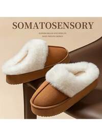 1 Pair Fashion Winter Warm Slippers - Plush Anti-Slip Thick Sole Shoes With Faux Fur Lining, Skin-Friendly Soft Cushioned PVC Sole, Brown/Black - Indoor/Outdoor House Slippers, All Season, Suitable For Home, Office, Casual Wear - Unisex Comfortable Slippers, Women Shoes, Women Slippers, Indoor Slippers, Men Slippers, Christmas, Thanksgiving, Easter Gifts #1 Bestseller