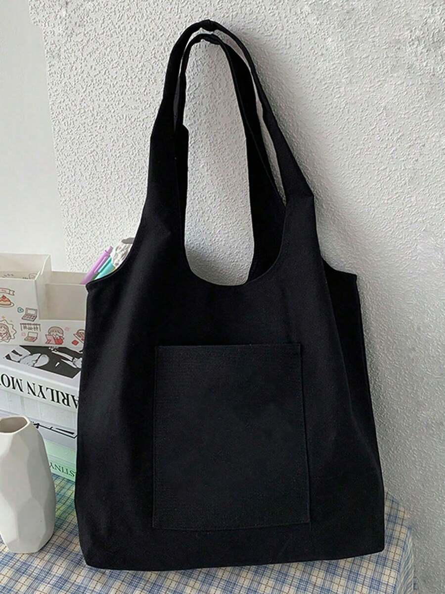 Women Simple Canvas Tote Bag, Open-Top Canvas Shoulder Bag, Handbag, Simple Briefcase Bag For Elementary/High School/College Students, Document Holder, Travel Bag