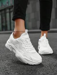 Beige Thick-Soled Wedge Heel Casual Sports Chunky Sneakers, Unisex Walking Sneakers, Suitable For Commuting, Fitness, Travel, Round Toe, Low-Top, Multi-Function, New Year & Valentine's Day Gift, Women's Sports Shoes (Please Select One Size Up Based On Foot Width, For Those With Wide Palms) #3 Bestseller