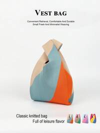 yoyee Times1pc Multicolor Block Contrast Crochet Breathable Lightweight Foldable Handbag Women Tote Bag, Suitable For Daily, Vacation, Commuting, Shopping, Photography, Outing, Camping, Hiking, Back To School, Travel, Holiday, School Girls And Ladies, All Seasons, Perfectly Matching With Vacation Outfits Women, Vacation Essentials, Perfect For Summer, Vacation & Beach , Crochet #1 Bestseller