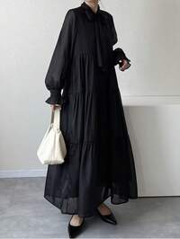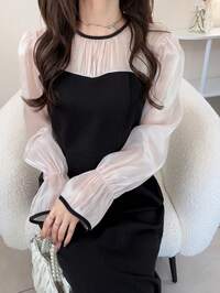 DAZY Elegant Black Lace Patchwork Midi Dress, Suitable For New Year, Christmas, Wedding, Party, Formal Occasions, Fashion Party Dress For Women, Seasonal For Spring, Summer, Autumn, Winter #1 Bestseller