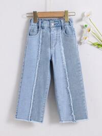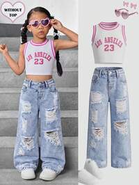 SHEIN SLAYR KIDSYoung Girl New Fashion Y2k Cute Urban Street Style Distressed Ripped Frayed Light Washed Blue Denim Ripped Loose Fit Baggy Jeans Spring Summer, For Spring And Summer Casual Vacation Country Boho Wear, Beach, Western Street Wear For Girl, Spring Break, Rave Festival Denim Pants,Jeans,4-Year-Old Jeans,Summer Jeans,Cute Jeans,Y2k 2000s Baggy Jeans #10 Bestseller