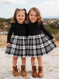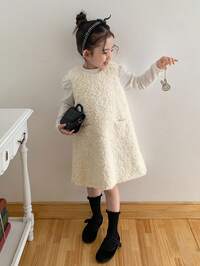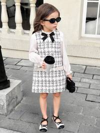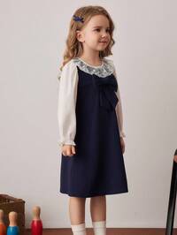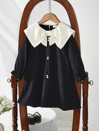 SouflisSouflis Young Girls' Elegant Preppy Style Peter Pan Collar Dress, Button Decor, Khaki And White Colors, Suitable For Autumn Outerwear, Can Be Paired With Jacket In Winter, Suitable For School, Vacation, Travel, Girls Autumn/Winter Clothing, Girls Outerwear, Layering, Versatile Design, Fits Ages 4-7 #4 Bestseller