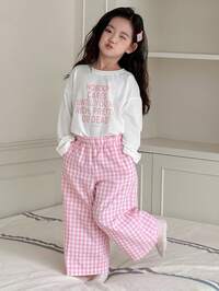 HappikinsSHEIN Happikins 2pcs/Set Young Girl Cute Ballet Style Pink Bow & Heart Print, Pink Bow Ribbon Print, Easy Comfort, Sleepwear Long Sleeve Top And Pants Set, Suitable For Summer, Fall, Winter Casual Campus Sports Style, Outdoor Picnic, Outgoing, Street Snap, Home, School #1 Bestseller