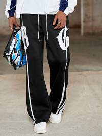 PAVTROS Manfinity Streetrush Men's Letter Print Young Street Style Classic Side Stripe Sweatpants