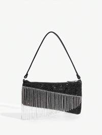 SHEIN ICON Women Diamond Tassel Glitter Shoulder Bag, Evening Bag, Club, Rhinestone
