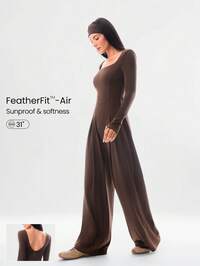 GLOWMODE FeatherFit™-Air Sunproof Work And Flow Square Neck Open U-Back Wide Leg Long Sleeve Bodysuit With Thumbholes Daily Casual Wear Removable Cups