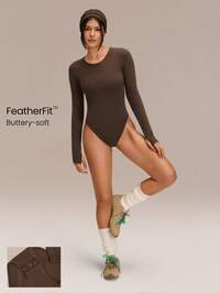 GLOWMODE FeatherFit™ Snap Into Sleek Long-Sleeve Non-Padded Thumbholes Snap Closure Crewneck Bodysuit Low Impact Yoga Pilates Studio Gym Daily Active Wear
