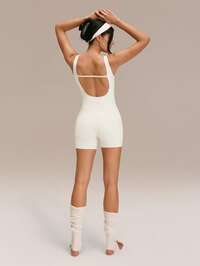 GLOWMODE 24" FeatherFit™ Tummy Control U-Back Jumpsuit With Built-In Shorts White Gym Sports Elegant Women
