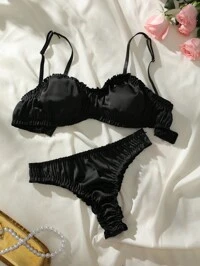 Frill Trim Satin Bra & Panty Lingerie Set